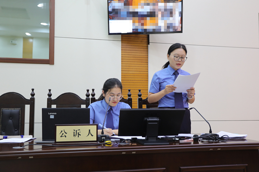 查察官在这起高仿“网红”精油案中出庭复旧公诉。(桓台县查察院供图)