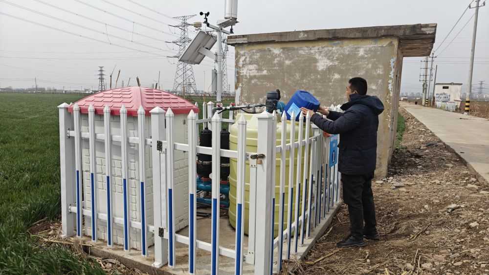 3月18日,在河南省鹤壁市淇县,当地农民正在诈欺水肥一体化招引为麦田施肥。(王家胜 摄)