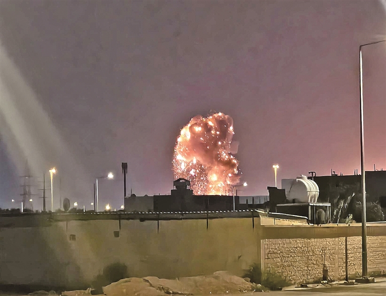 图为3月18日晚,沙特都门利雅得南部地区遇袭现场升空浓烟。 新华社发
