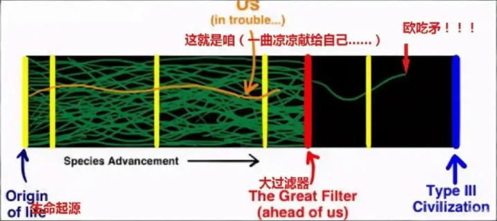 第一种可能性:“大过滤器”会随时出目前东说念主类雅致的发展程度中,将东说念主类雅致从寰宇中绝对抹掉。
