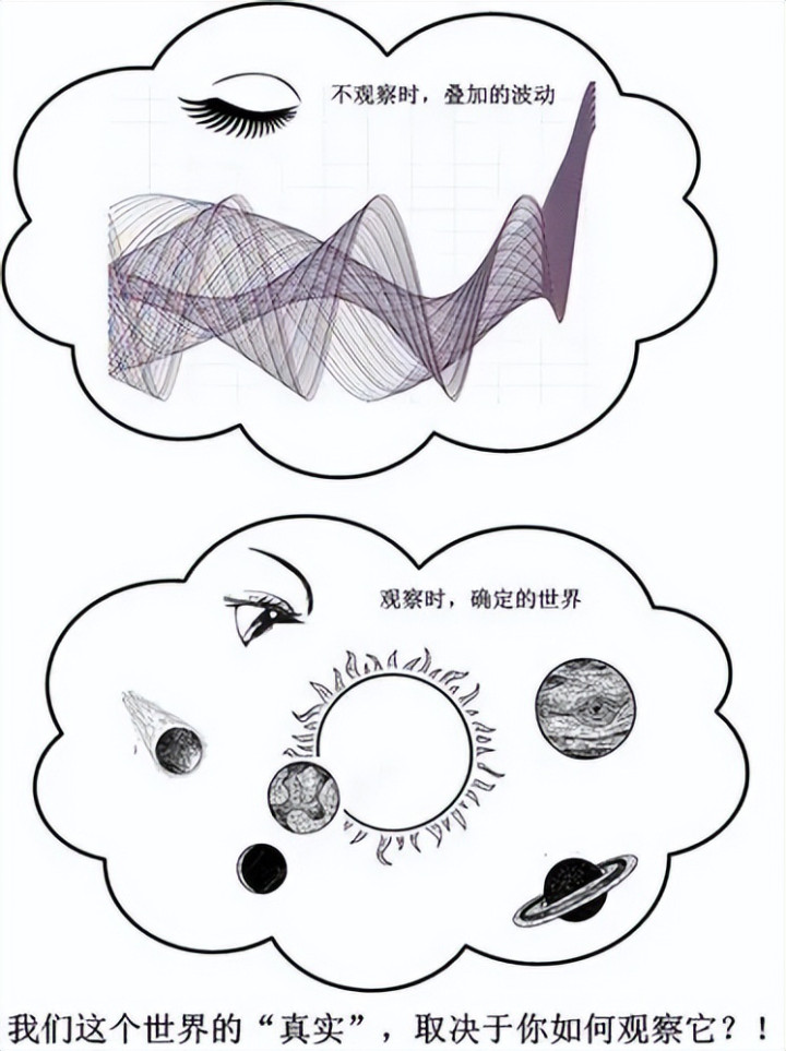 还有量子力学中的不肯定性旨趣:微不雅粒子在不被不雅测时,会处于一种歪邪的概率云情景,无法肯定它的位置和速率;而一朝东说念主们实施了不雅测,它就会瞬息从概率云情景,变成一个肯定的情景。