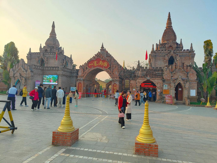 打理好之后外出,先到民宿近邻的一寨两国门口拍几个照,你说这个处所神奇吧,也神奇,仅仅其实我住的民宿近邻其实也雷同是别国,体验了一整天,有点审好意思疲钝了,大门外拍两张,平直开车回芒市。
