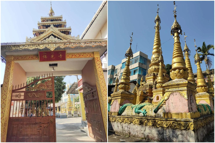 接着走到五云寺庙,同期期配置的庙,照旧莫得些许旅客了,是以看来旅客多多的菩提寺,真虔敬的是莫得些许个东说念主的,连绵不断,都是各怀我方的心想吧。寺内的金塔,是以莫得昨天的宏伟,然则亦然皆备的南传特质。