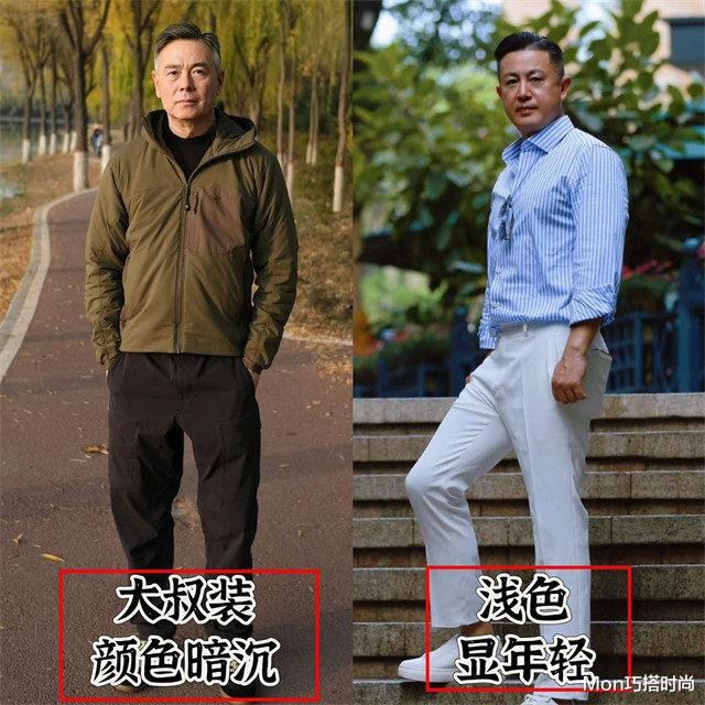 说到中年穿搭,我们身边最常见的便是这种暗千里色大叔装了,年事大了总褊狭穿成显眼包,于是乎就毁掉了亮色,可这种全身王人是暗千里色的衣着会澈底地吸走我们面部的色泽感,显得疲态很重,极少精气神王人莫得。