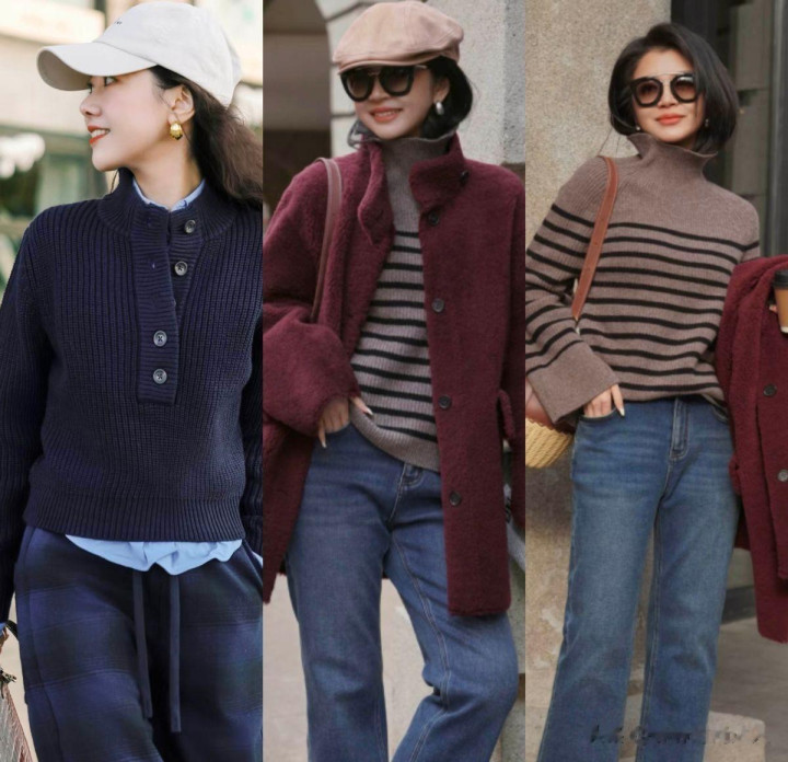 毛衣和针织衫有着相通的特点,举座的材质皆有一定的弹性,而针织衫的统共花样会稍许的薄一些,群众不错阐述我方的躯壳特征,来挑选修身或者是宽松的谋略。