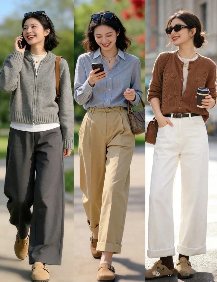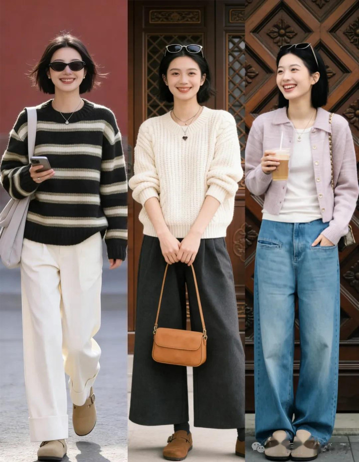 像毛呢阔腿裤,西装材质的阔腿裤或棉麻阔腿裤等ok,这些垂感好的裤子和勃肯鞋搭配起来,能将厚爱与闲适兼并的恰到平正,很有范儿。