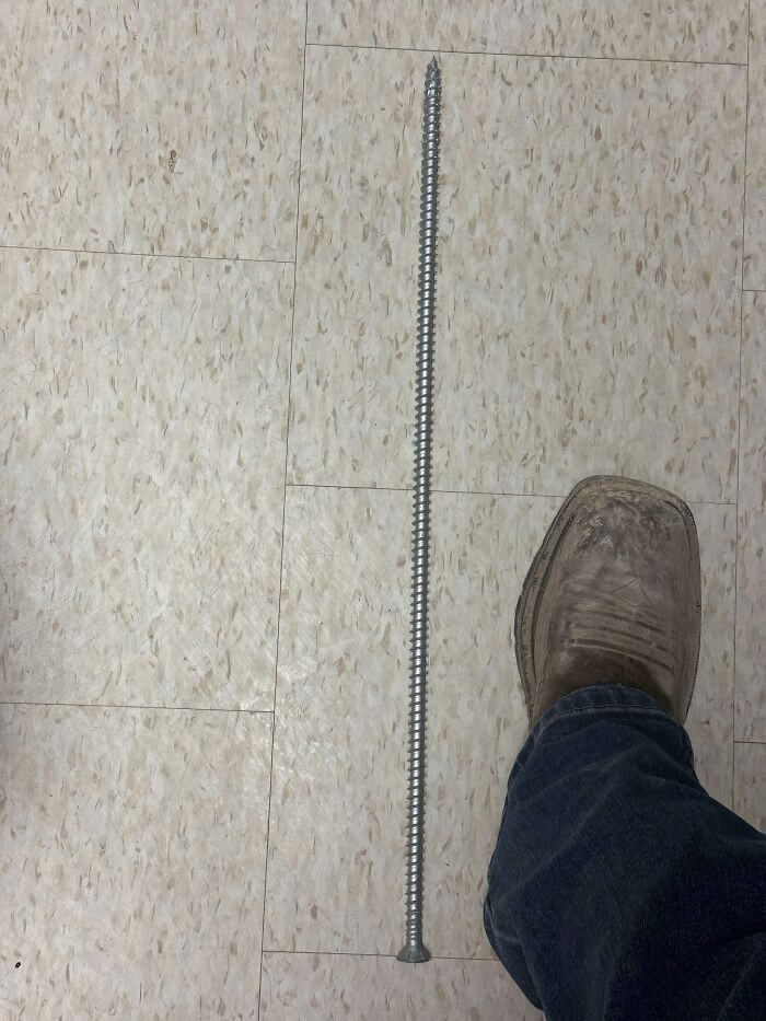 用于固定配置结构的巨型木梁。褒贬区有东说念主开打趣:“蓝本我丢的那颗螺丝在这里。”