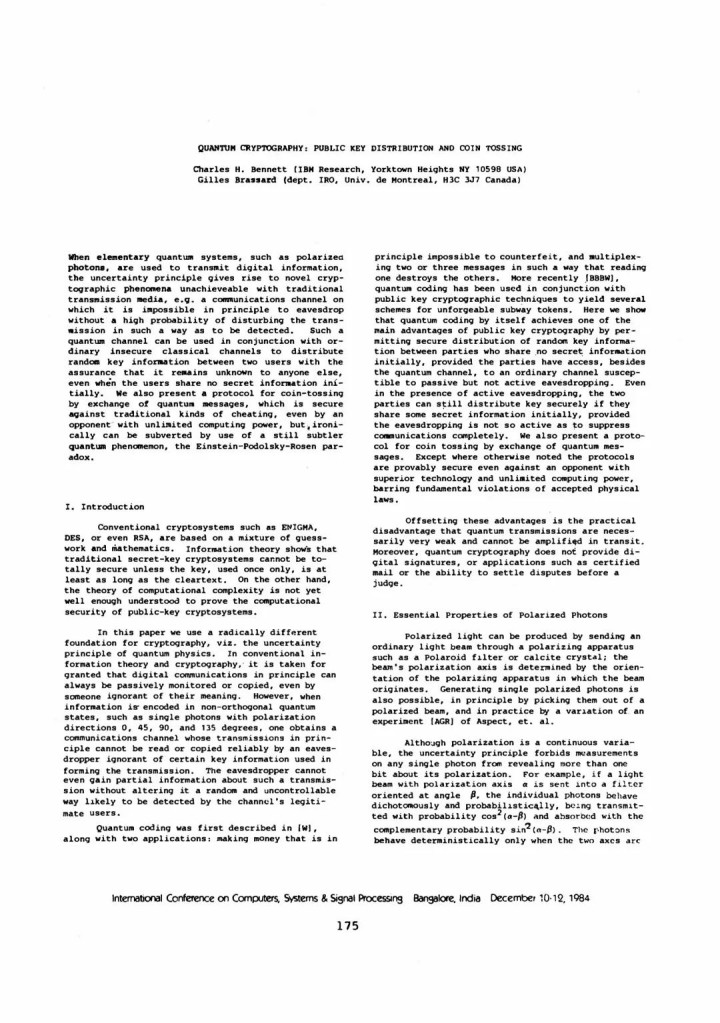 除了密码学除外,Charles H. Bennett 和 Gilles Brassard 的责任也重塑了蓄意表面的基础。