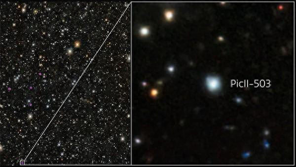 PicII-503是首颗在暗弱的矮星系中发现的星族II恒星。征询团队集中DECam的探询数据、甚大千里镜(VLT)和麦哲伦-巴德千里镜的不雅测数据,发现PicII-503具有铁和钙含量偏低的特征。