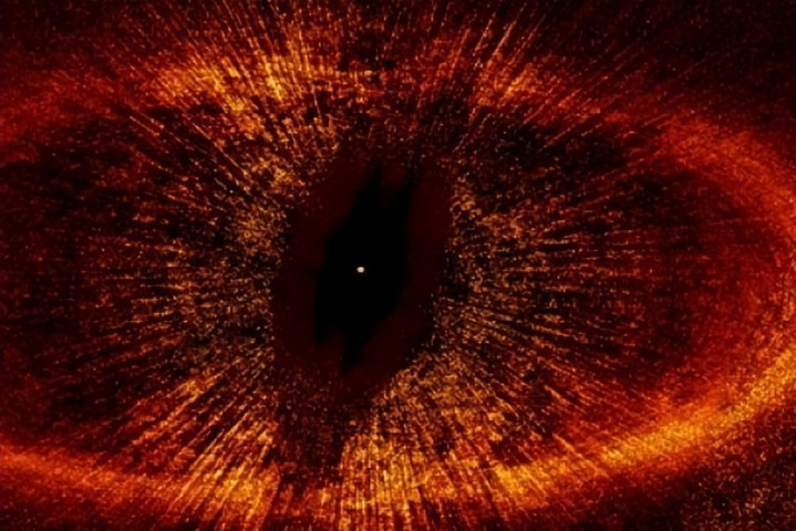 展当今东说念主类眼前的,不是一个宁静的恒星系,而是一个极其宏大、极其完好、且闲静着幽暗后光的巨大卵形尘埃环。恒星的后光被环带角落的微尘散射,在暗中的天地真空中,勾画出了一只无比巨大、冷情、且布满血丝的“眼睛”。