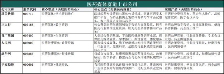 中枢业务:聚焦医药行业信息传播、学术引申、品牌营销、政策解读、行业资讯,服务药企、运动企业、医疗机构、医药从业者,涵盖医药专科媒体、行业期刊、学术平台、医药营销资讯、医药大数据舆情等,兼具信息传递与行业赋能属性,是医药产业链险阻游疏浚的桥梁,跟着医药行业措施化、营销样貌转型,专科医药媒体价值无间突显。