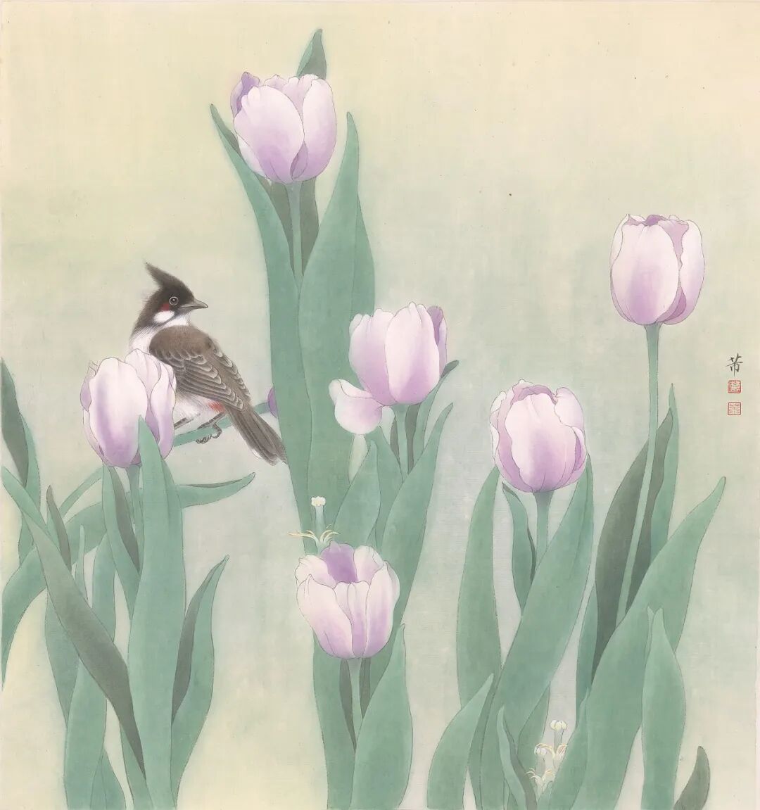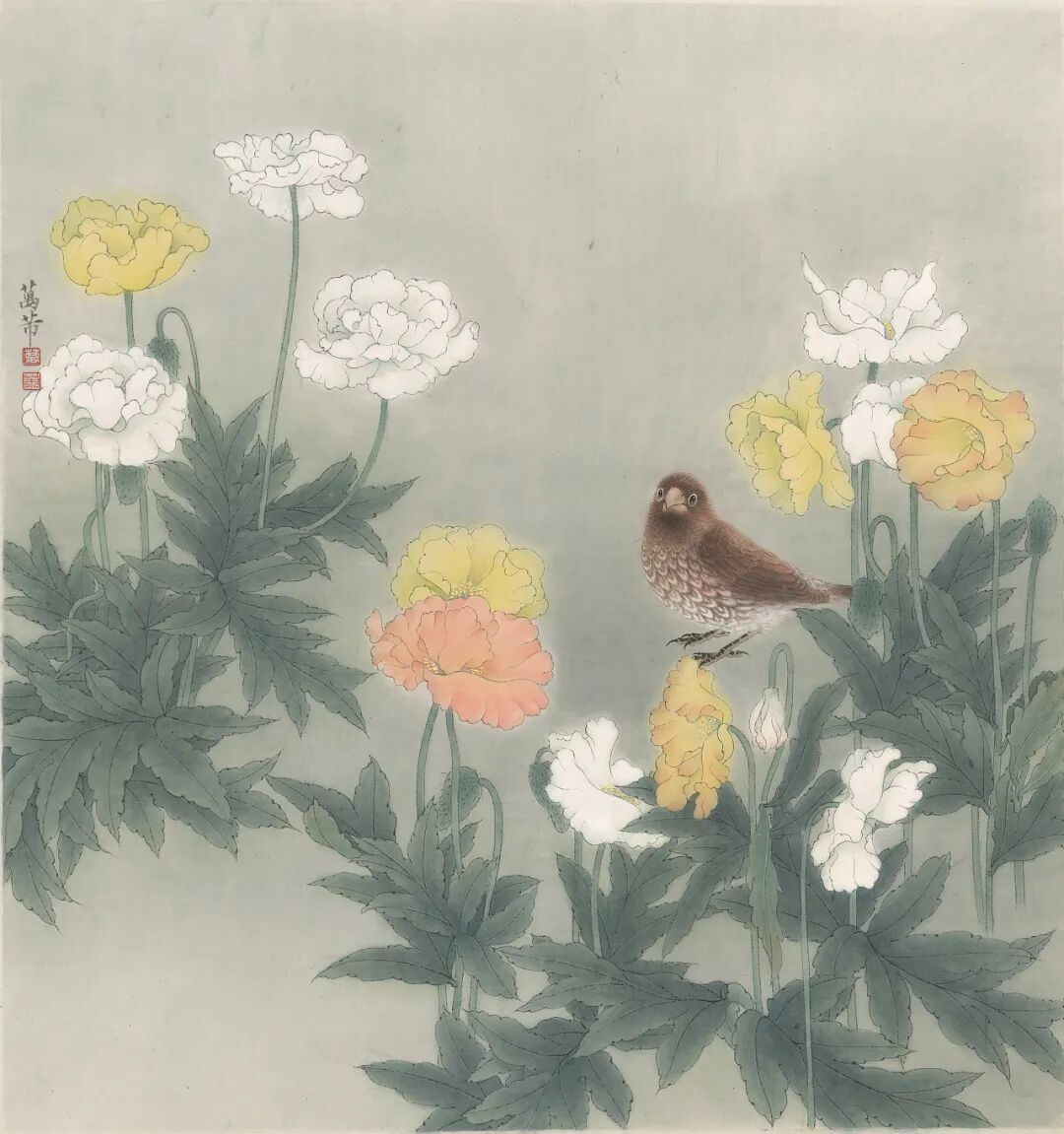 万芾是上海实力派花鸟画家,她笔下“花鸟寰球”中的二十四气节,作品颜色丰富,构图当代而不失传统韵味。
