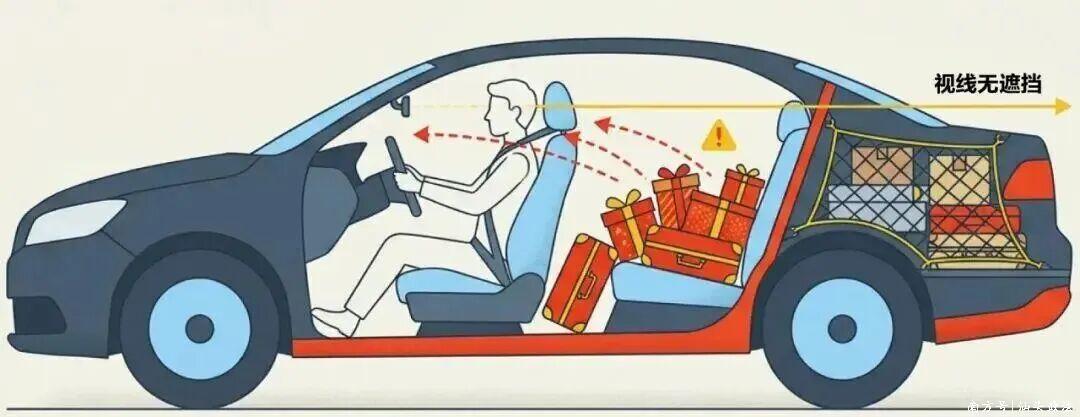 自驾返乡时,许多东说念主会在后备箱装满行李、年货,可一朝车辆在高速行驶中发生要紧制动,后方未固定的物品会因弘远的惯性变身“炮弹”飞上前舱,危及行车安全。