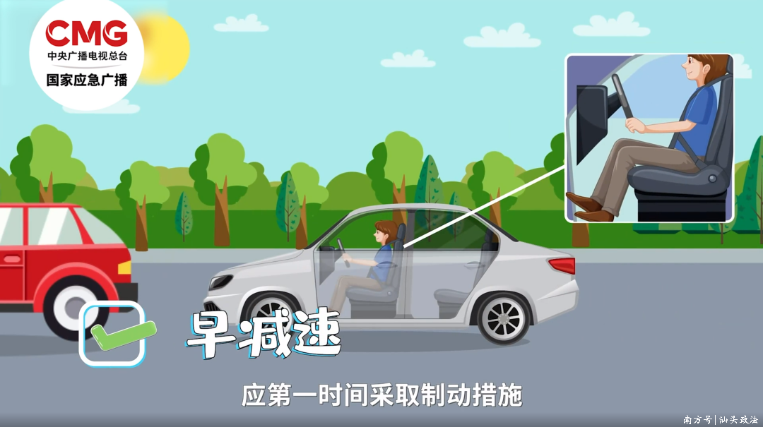 早暗示:减慢的同期掀开危境报警闪光灯,第一工夫把危境信号传递给其他车辆。