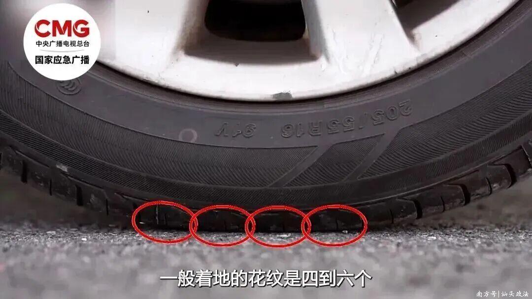 正常胎压时,一般着地的斑纹是4~6个;大于6个则胎压不及,小于4个胎压过高。