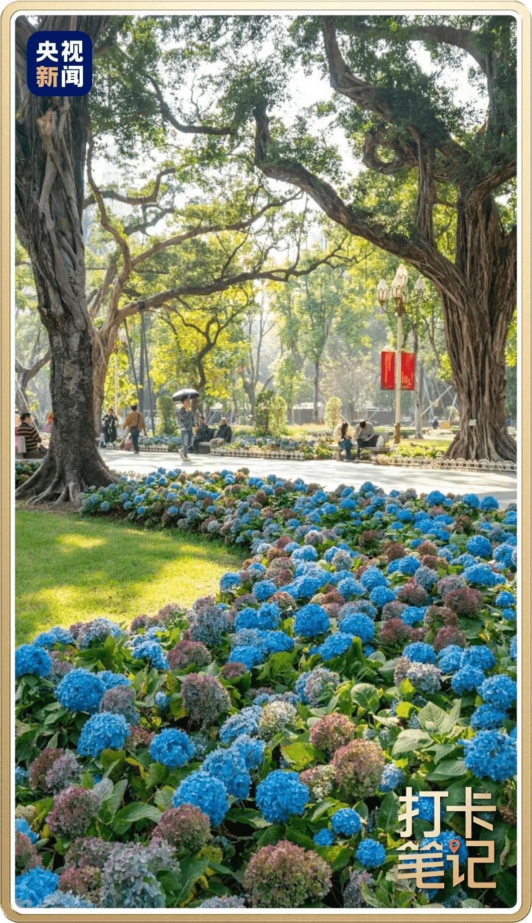 去广州东谈主民公园看柔软洞开的绣球花;去深圳梅园、汕尾陆河看梅花如雪覆枝端;去韶关新丰的山谷看彩霞般的樱花;去江门江海、珠海斗门看龙盘虎踞的金色油菜花。