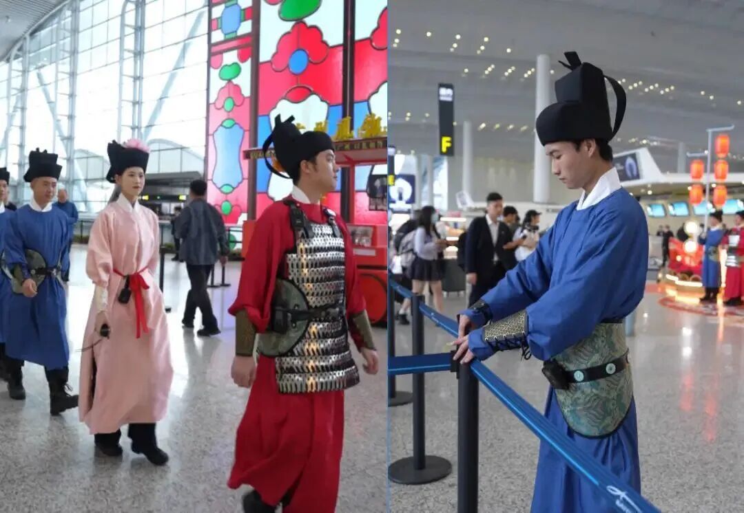 春运开启,广州白云机场全员穿越成“宋服卫士”,从衣饰妆容到“叉手礼”请安,让你下飞机梦回千年。