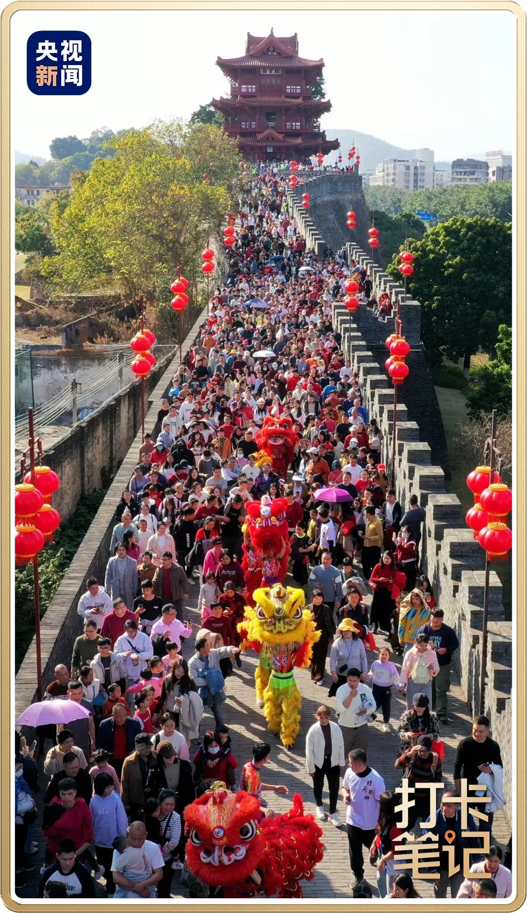去肇庆宋城墙看龙狮队列摆动穿梭,到宋城骑楼街体验宋代风华与估客年俗,感受岭南的新春福分。